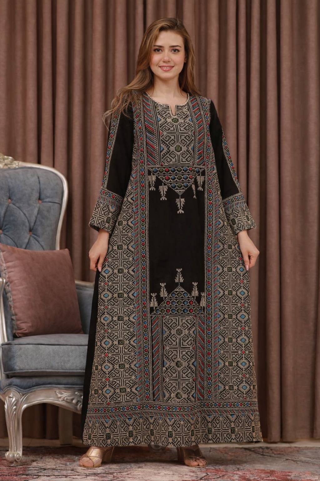 Traditional Embroidered Maxi Dress with Open Sleeves